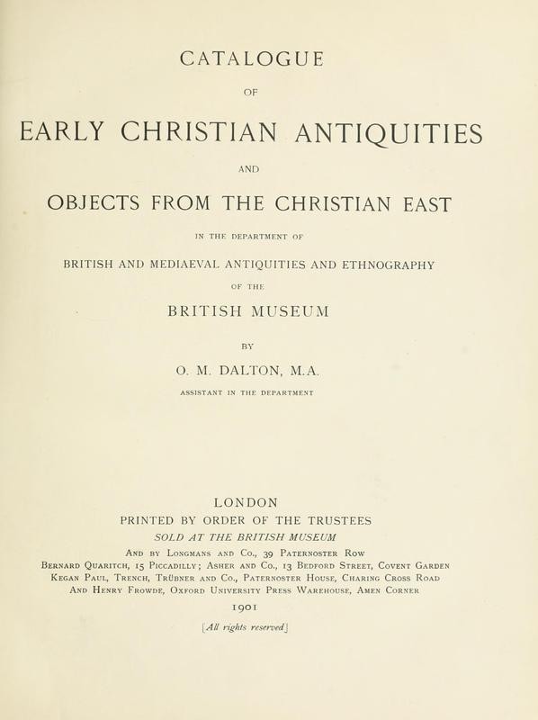 Home » » Books » Dalton 1901: Catalogue of the early Christian antiquities and objects from the Christian East in the Department of British and Mediaeval Antiquities and Ethnography of the British Museum